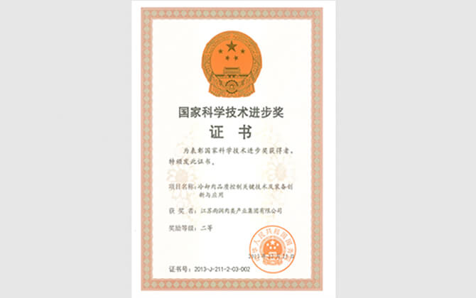 1月10日,雨潤集團與南京農(nóng)業(yè)大學周光宏教授課題組共同完成的“冷卻肉品質(zhì)控制關(guān)鍵技術(shù)及裝備創(chuàng)新與應用”項目獲國家科學技術(shù)進步二等獎。